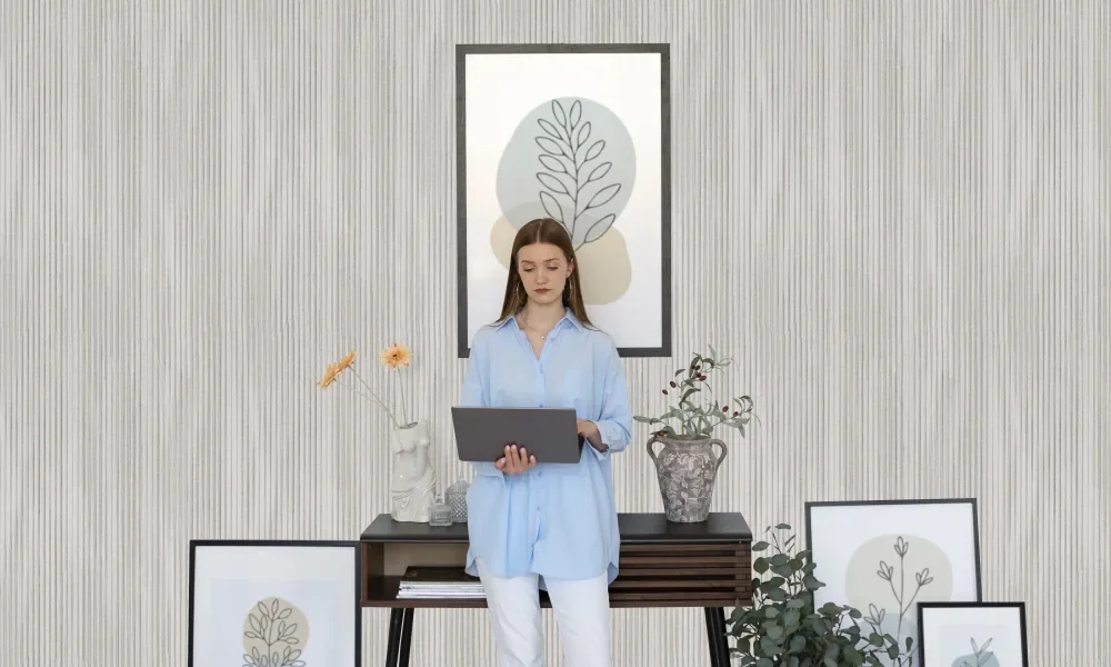 کاغذ دیواری کربن2/carbon طرح راه راه نقرهای کد ۱۰۱۸۲